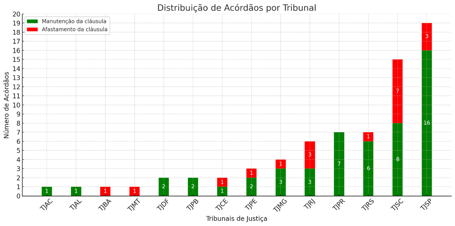 Os acórdãos/decisões foram classificados em duas categorias principais: (i) os que mantiveram a cláusula de eleição de foro; e (ii) os que afastaram a cláusula.