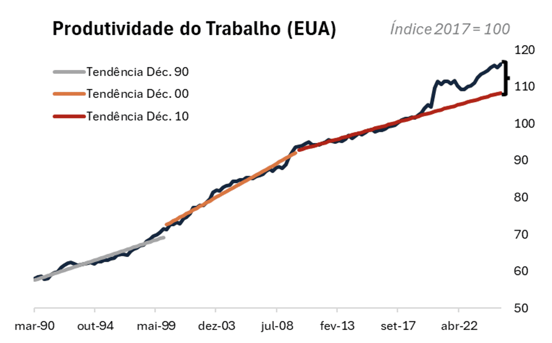 Só recentemente, a partir de 2022, observamos sinais de aceleração da produtividade acompanhados de uma redução suave da taxa de emprego, sugerindo uma possível reconfiguração dessa relação. Esses movimentos ainda são incipientes. É cedo para afirmar se marcam o início de uma mudança estrutural ou apenas um soluço estatístico ou resquício do ciclo econômico, mas já oferecem combustível para que otimistas e céticos reforcem suas narrativas.