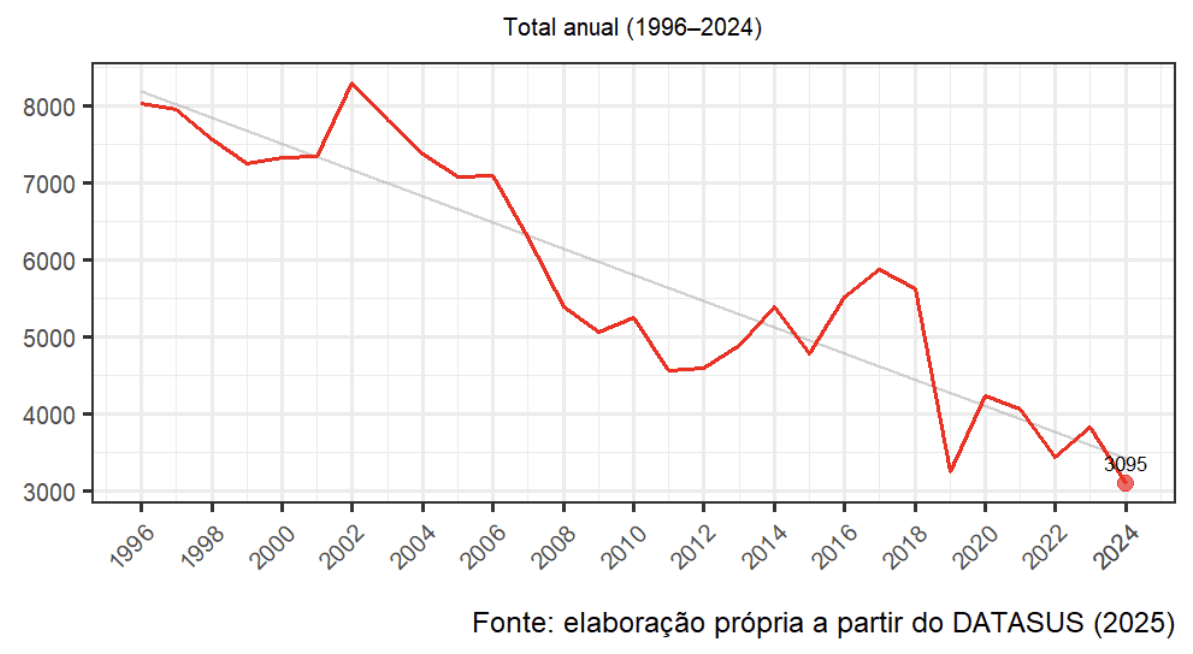 Figura 2: Média diária de mortes por agressão no Rio de Janeiro (1996-2024)